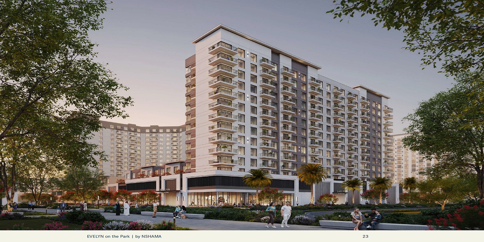 Images of the entrance, clubhouse, and tower views of the Nshama Evelyn On The Park are available on our website. You can search for the Nshama Evelyn On The Park on squareyards.ae, and once the page with project information opens, one can click on the ‘Quick Links’ option and see all the Nshama Evelyn On The Park images.
