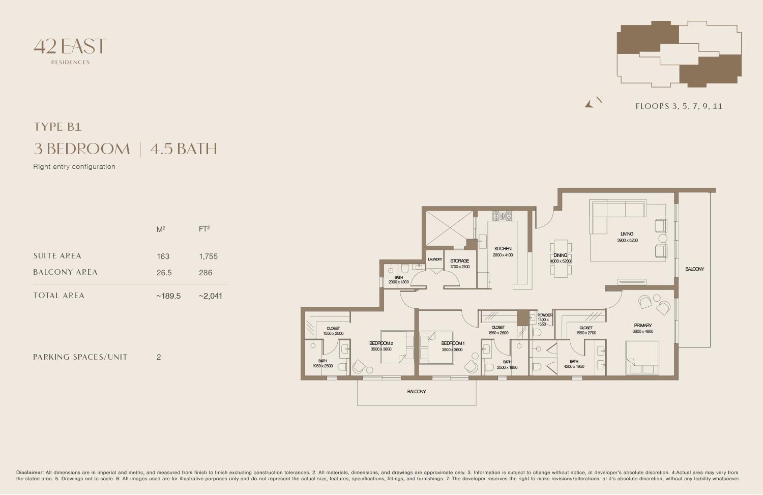 The Panchshil 42 East Residences offers various floor layouts, like,3 Beds,4 Beds.
