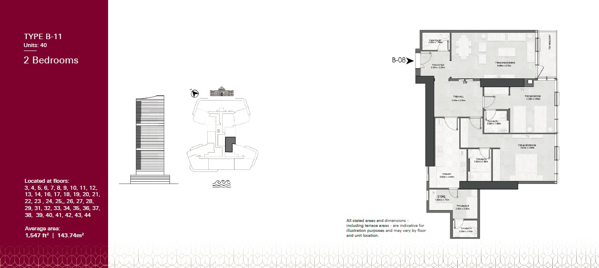 The Albatha Joud Tower offers various floor layouts, like,2 Beds,3 Beds.
