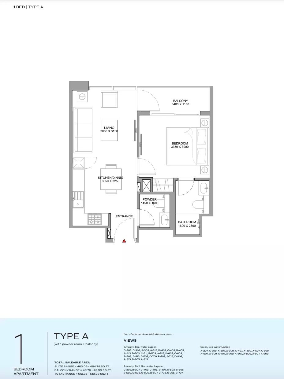 The Sobha Florine Beach Residences offers various floor layouts, like,1 Bed,2 Beds,3 Beds.