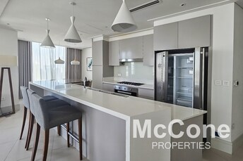 Indulge in the ultimate luxury living experience in this exquisite 3-bedroom apartment located on a high floor in Tajer Residences, nestled in the hea