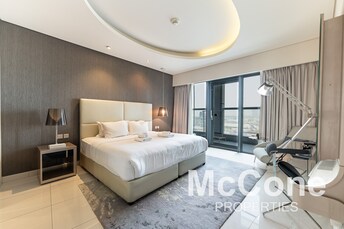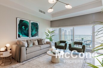 Indulge in the ultimate luxury living experience in this exquisite 3-bedroom apartment located on a high floor in Tajer Residences, nestled in the hea