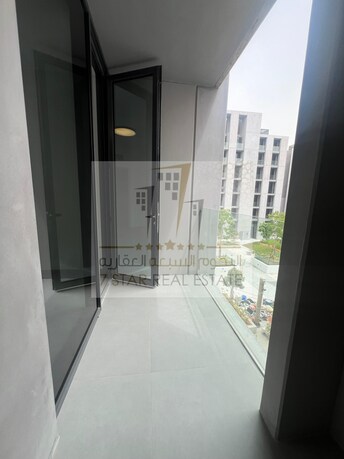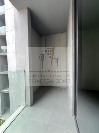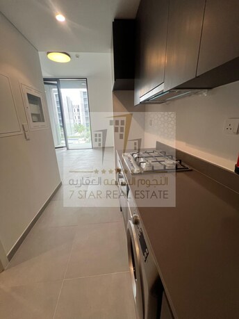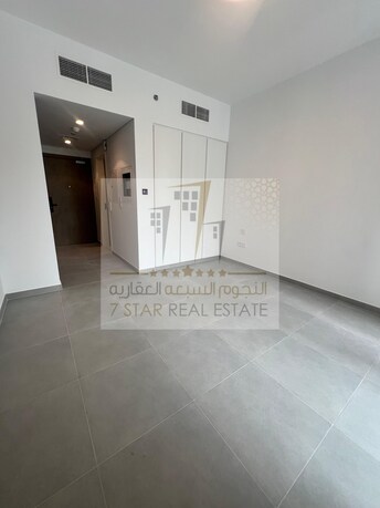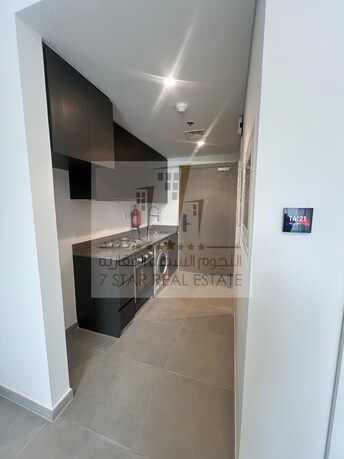 For rent studio in Aljada, Terraz building - First resident - Smart home systems - Balcony - Pool and garden view - Wall cabinets - Kitchen appliances