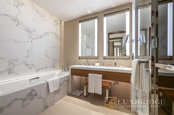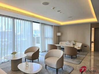 Indulge in the ultimate luxury living experience in this exquisite 3-bedroom apartment located on a high floor in Tajer Residences, nestled in the hea
