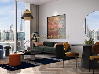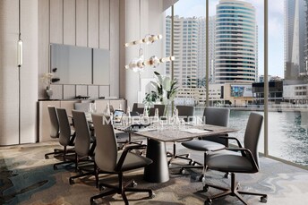This modern studio apartment in Peninsula Four, Business Bay, offers a compact yet luxurious living space. The open layout maximizes space, featuring