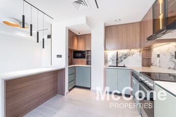 This 2-bedroom apartment in Binghatti Heights at Jumeirah Village Circle offers a modern living space with an open-plan layout. The bright interiors a