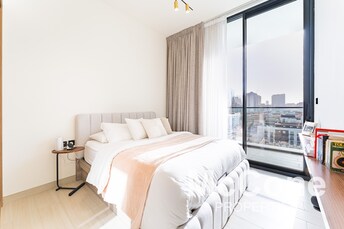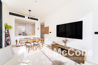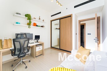 This studio apartment in Chaimaa Premiere, Jumeirah Village Circle, offers modern comfort in a compact space. The open-plan layout includes a cozy liv