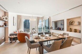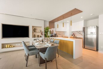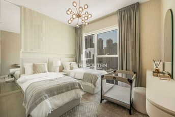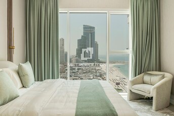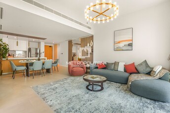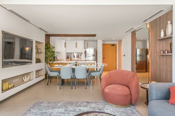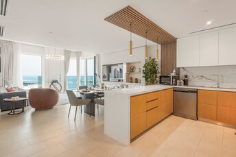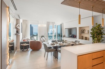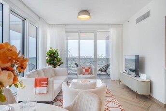 This 2-bedroom apartment in La Vie, Jumeirah Beach Residence, exudes modern luxury with a beachfront vibe. The open-plan living and dining area seamle